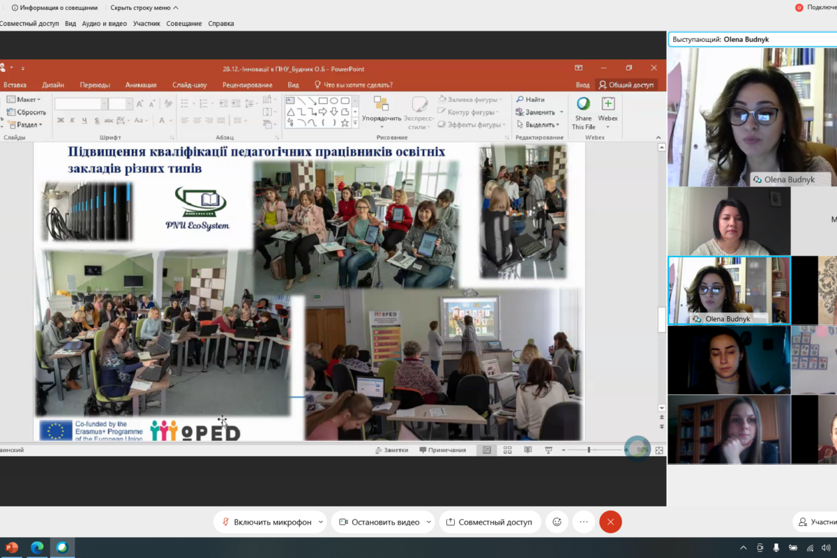 14-15 січня на базі Центру інноваційних освітніх технологій «PNU EcoSystem» проходили онлайн-тренінги з підвищення кваліфікації педагогічних працівників закладів загальної середньої освіти на тему: «Зворотний зв’язок у дистанційному та змішаному навчанні учнів» для вчителів Школи вільних та небайдужих м. Львова. У навчаннях, яке проводилося з використанням відеоконференцзв’язку Cisco WebEx, взяли участь 52 учасники.