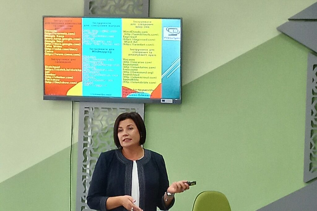 Професорка Тетяна Качак і доцентка Тетяна Близнюк розповіли присутнім про найбільш поширені цифрові ресурси та інструменти для дистанційного і змішаного навчання здобувачів загальної середньої освіти, зокрема про сервіси для візуалізації навчального матеріалу, створення інтерактивних завдань, а також провели воркшоп з використанням мобільних пристроїв в організації індивідуальної роботи з учнями та отримання миттєвого зворотнього зв’язку при роботі з історичними матеріалами.
