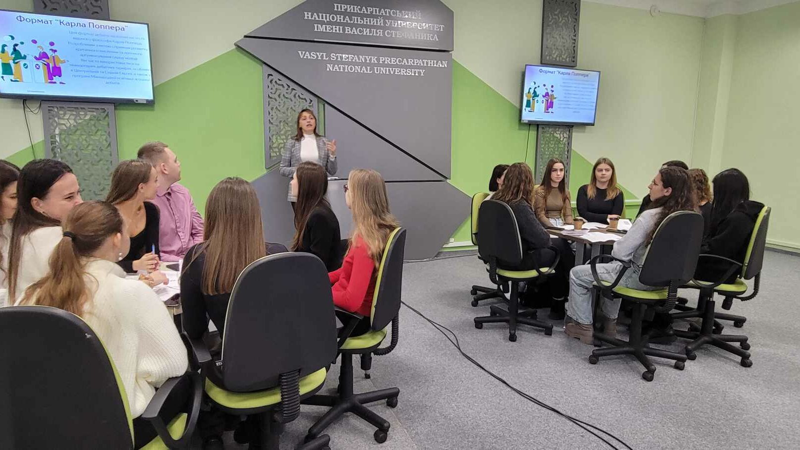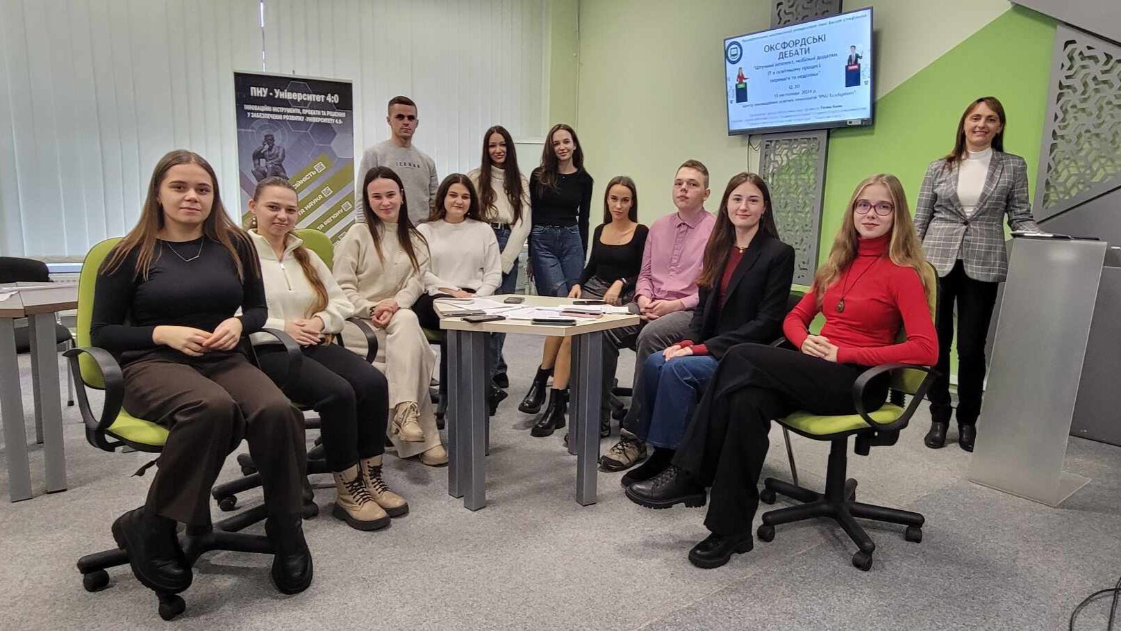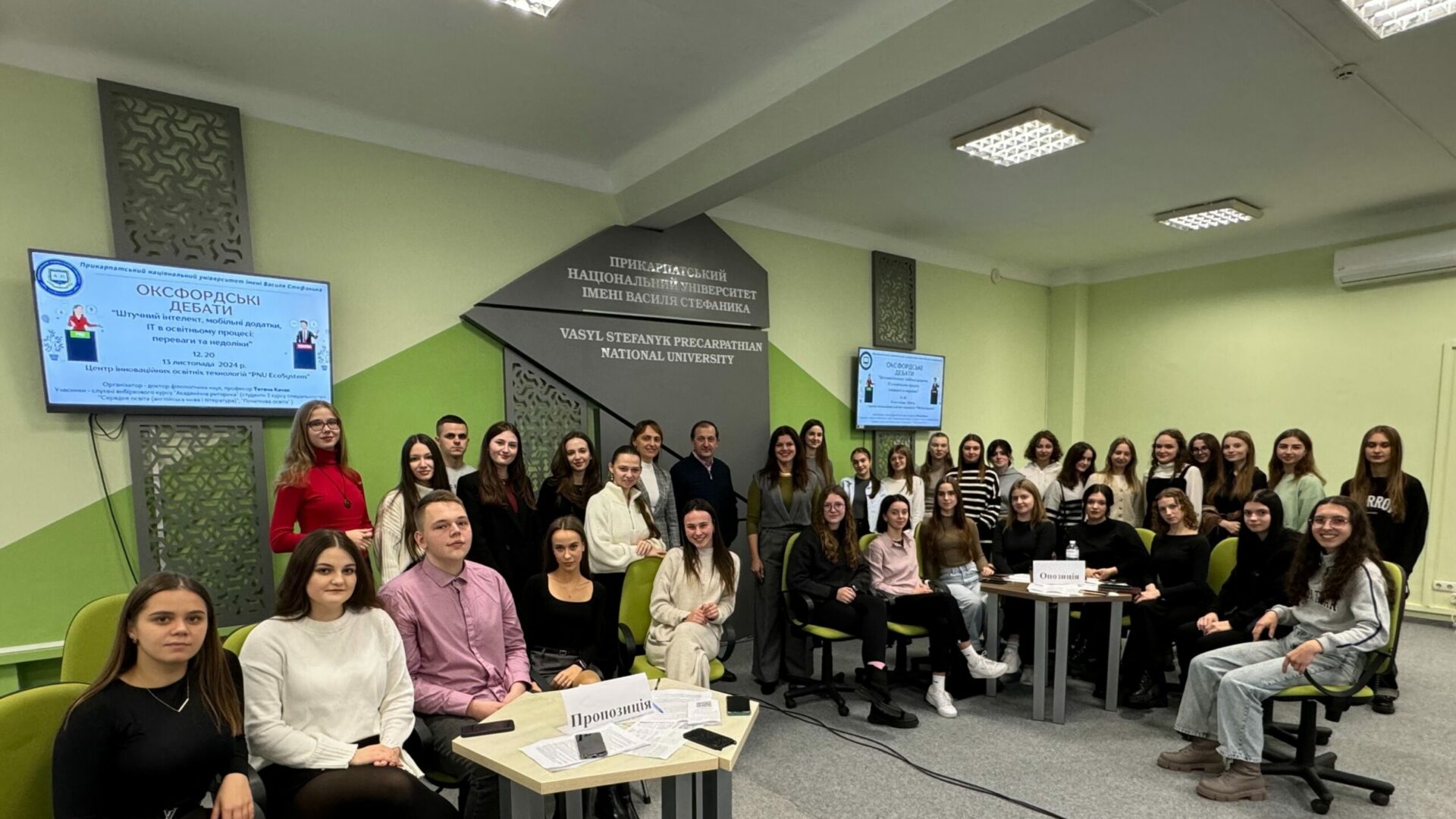 13 листопада у Центрі інноваційних освітніх технологій «PNU EcoSystem» професорка Тетяна Качак провела Оксфордські дебати “Штучний інтелект, мобільні додатки, IT в освітньому процесі: переваги та недоліки”. Їх учасниками стали студенти 3 курсу спеціальності “Середня освіта (англійська мова і література)” та 4 курсу спеціальності “Початкова освіта”, які вивчали вибіркову дисципліну “Академічна риторика”.