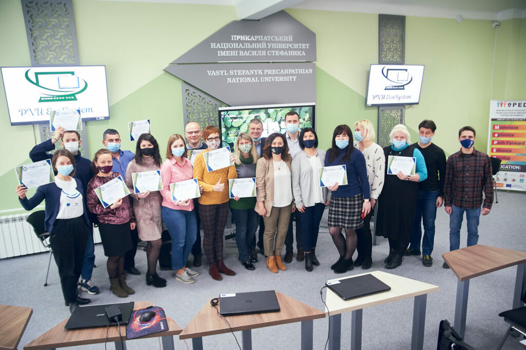 On April 28, the Center of Innovative Educational Technologies “PNU EcoSystem” completed the second series of advanced training courses for teachers of vocational education in Ivano-Frankivsk and the towns of Sein and Sighetu Marmatiei (Romania) on “Innovative learning technologies in educational activities of teachers”, which lasted for several days. According to the data of electronic registration, 2 groups of 50 pedagogical workers were formed. The groups of Ukrainian teachers worked offline in compliance with all quarantine requirements, whereas the Romanian team joined the training via videoconference Cisco WebEx platform.