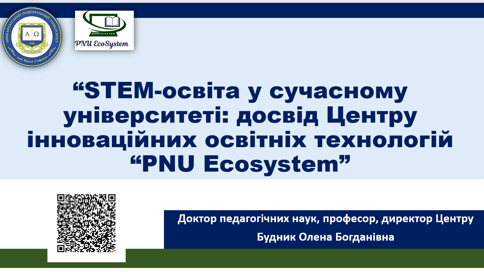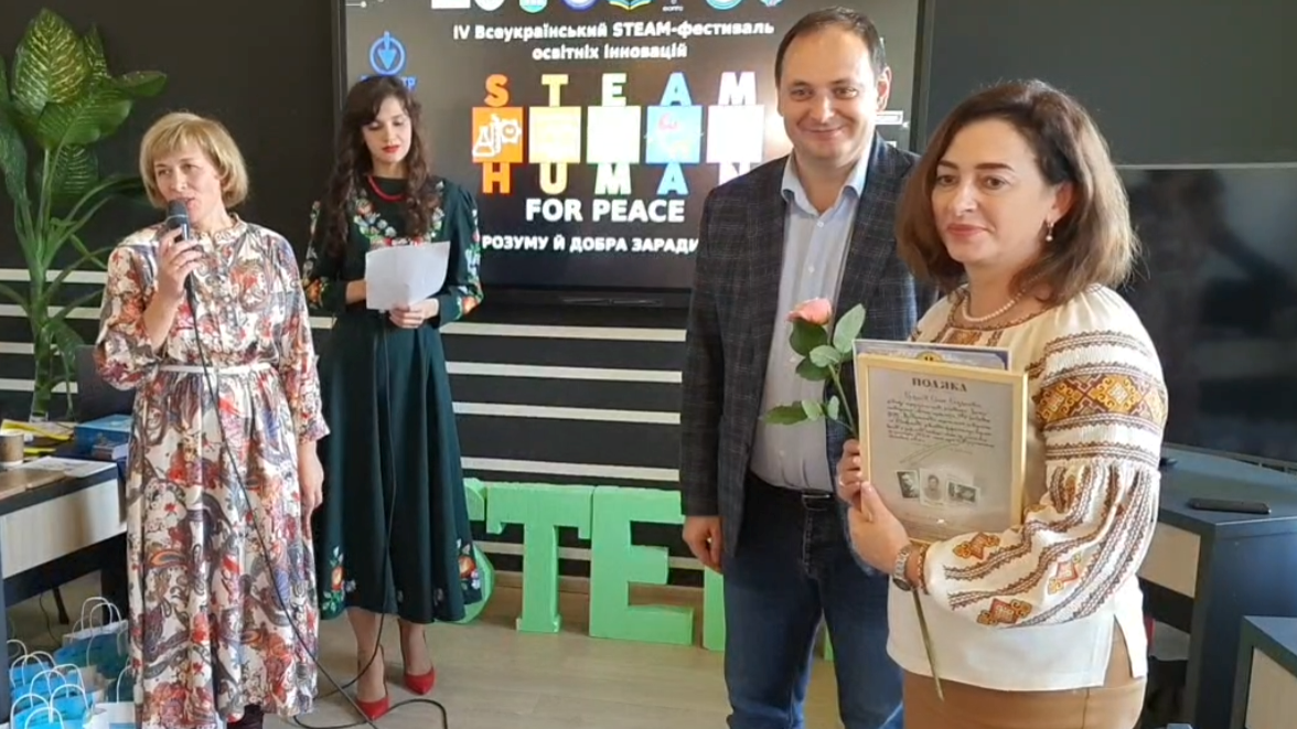 Director of the Center “PNU EcoSystem” Olena Budnyk and a Candidate of Sciences (Physics), a senior Lecturer of Computer Engineering and Electronics, and engineer-programmer of the Center Mykhailo Kotyk participated in the IV All-Ukrainian Festival of Educational Innovations – STEAM-FEST “Human for peace: the power of reason and goodness for the sake of humanity”, which took place on October 24 in a mixed format.