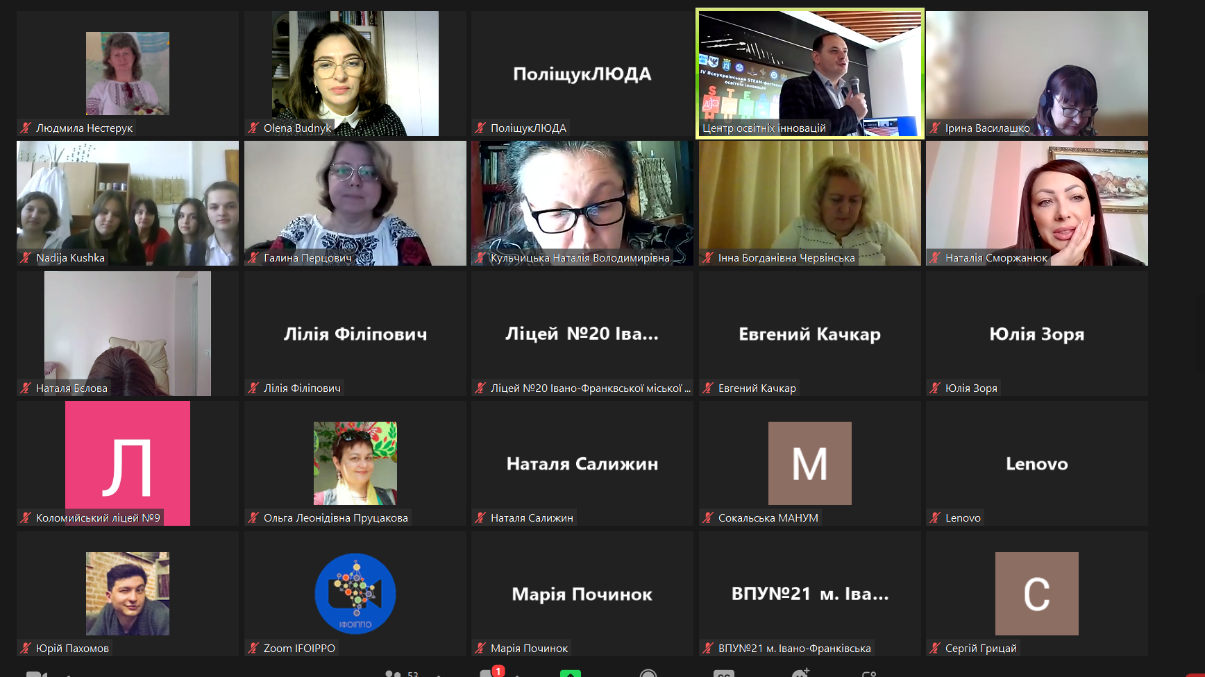 The scientific-theoretical block of the festival included the streaming from the STEAM education innovation laboratories of Ivano-Frankivsk, where Professor Olena Budnyk gave a speech “STEAM-education in a modern educational institution: experience of the Center for Innovative Educational Technologies “PNU EcoSystem”. The speech emphasized the feasibility of the Center for training and enhancing educators’ qualifications in the field of STEAM education, as well as future teachers’ training to use digital resources and tools in distance / mixed school education.