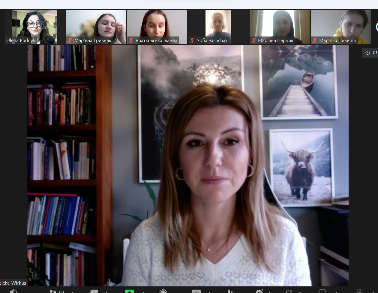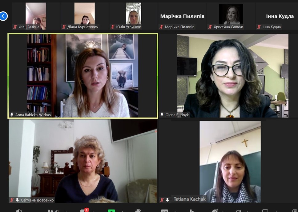 The Dean of the Faculty of Education, Doctor of Pedagogy, Professor Oksana Kondur extended her gratitude to her Polish colleague for the interesting encounter, noting that “the culture of clothes, thoughts, and behaviour serves as an element of the general culture of a person, a teacher.” She also made some suggestions on the prospects for further scientific and educational cooperation. The participants of the meeting were the Head of the Department of Primary Education, Professor Ruslana Romanyshyn, as well as Professors Oksana Tsiuniak and Tetiana Kachak; Associate Professors Svitlana Dovbenko, Mariia Kopchuk-Kashetska, and Kateryna Fomin. The lively conversations and debates among master’s students and teachers also delved into how youth subculture shapes students’ appearances in relation to children’s entitlement to self-expression, cases of discrimination and bullying in the student environment due to rejection of diversity. Master’s student Mariana Perchyk drew a parallel between the uniform requirements for school uniforms and the rules of appearance of students in private and public schools in Ivano-Frankivsk in the context of the freedom of expression of their thoughts, views and beliefs guaranteed by the Convention on the Rights of the Child. Attended by 80 participants, the event was aimed at outlining some of the activities of the Faculty of Education and the PNU EcoSystem Centre to implement the university’s strategy of internationalisation.