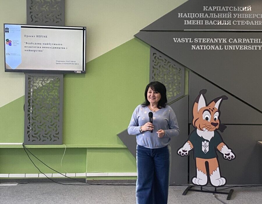During the theoretical session, Professors Oksana Kandur and Lyudmyla Matsuk introduced the attendees to the mission of the REFINE project, emphasising the importance of inventive pedagogy for modern education. Associate Professors Marianna Matishak and Iryna Skomorovska presented practical case studies in the following areas: pedagogy of invention: theoretical and methodological foundations and the role of the teacher-facilitator; makerspaces in education: requirements for creating and equipping modern spaces for creativity; they spoke about Scandinavian pedagogical experience, in particular the specifics of implementing makerspaces in educational institutions in Notodden (Norway). They paid particular attention to testing the authors’ didactic development – the Digital Detox Game – which sparked interest among the future teachers.
